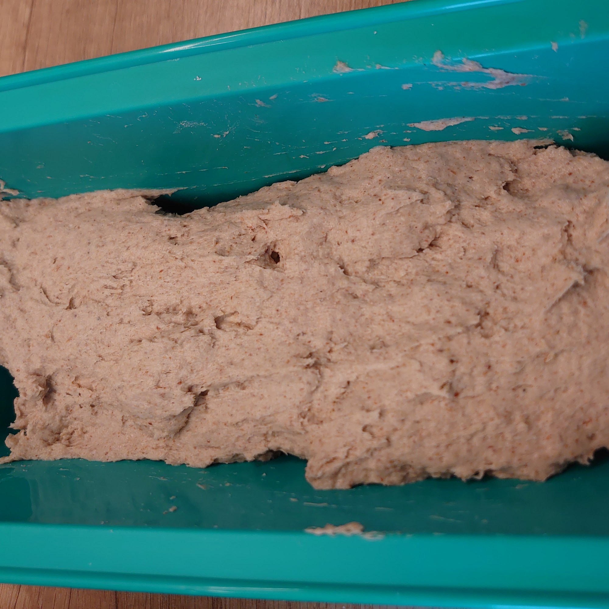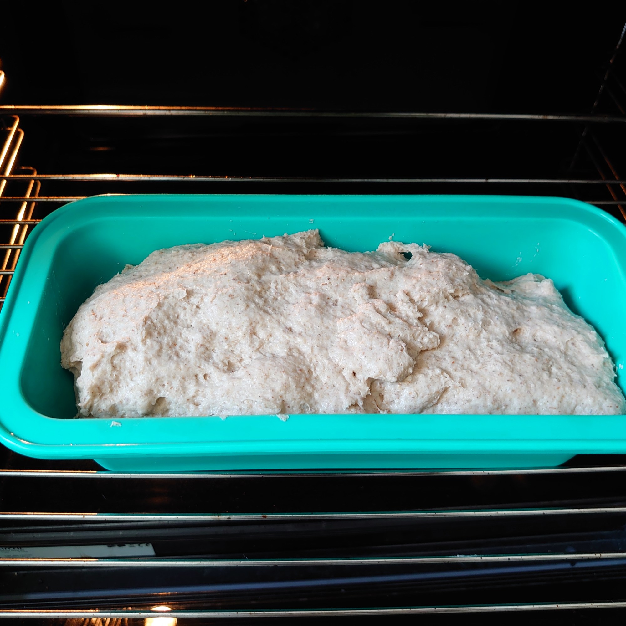 I use a simple silicon build loaf pan therefore I do not need to prepare anything extra. If you are using a metal or ceramic based, please oil with a bit of oil and powder it with flour to make it non-stick. Put the loosely fit into this pan and cover it with a wet towel (paper towel or very clean fabric based kitchen towel – note the bread might grow to touch it).