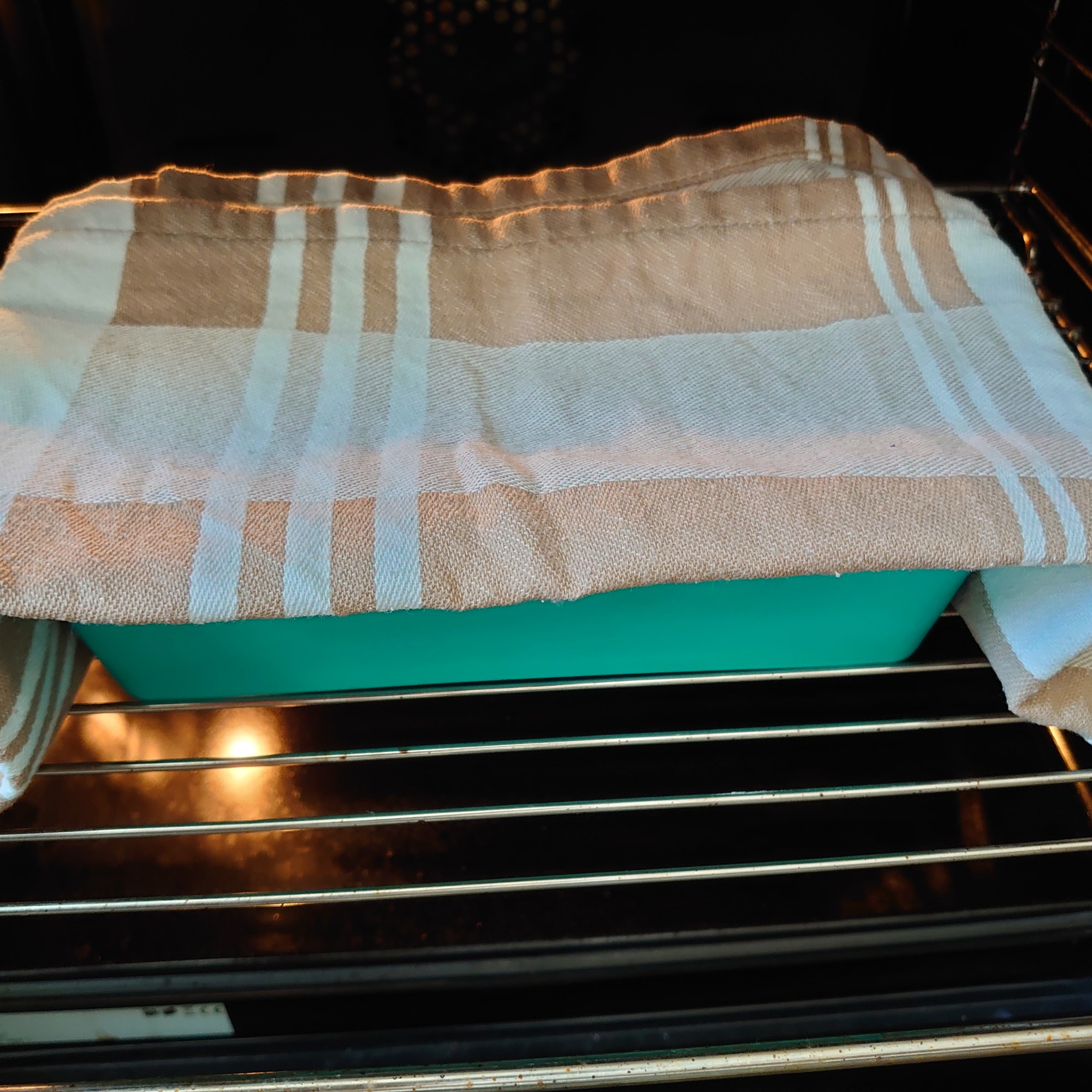 Let it rest for 45 min to 1 hour in a warm place at room temperature (in summer time) or in the oven set up at its lowest setting (recommended is anywhere between 30-40ºC (86 – 104º F).