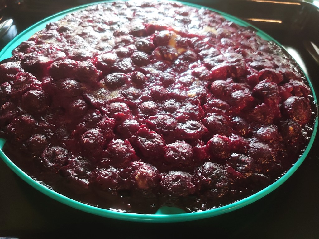 When working with cherries, mix them well with the sugar and alcohol and put them in your baking dish.