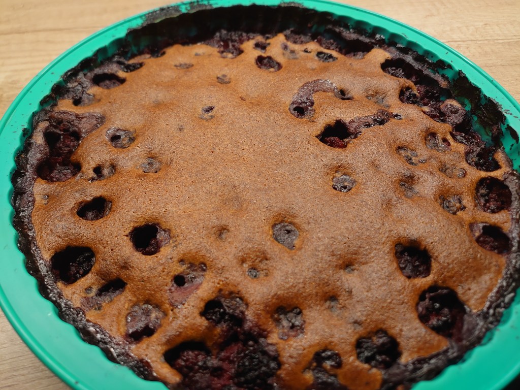 Pour it slowly over the fruits so as not to disturb the even distribution. Tap the baking dish slowly on the table to make the composition sit evenly.